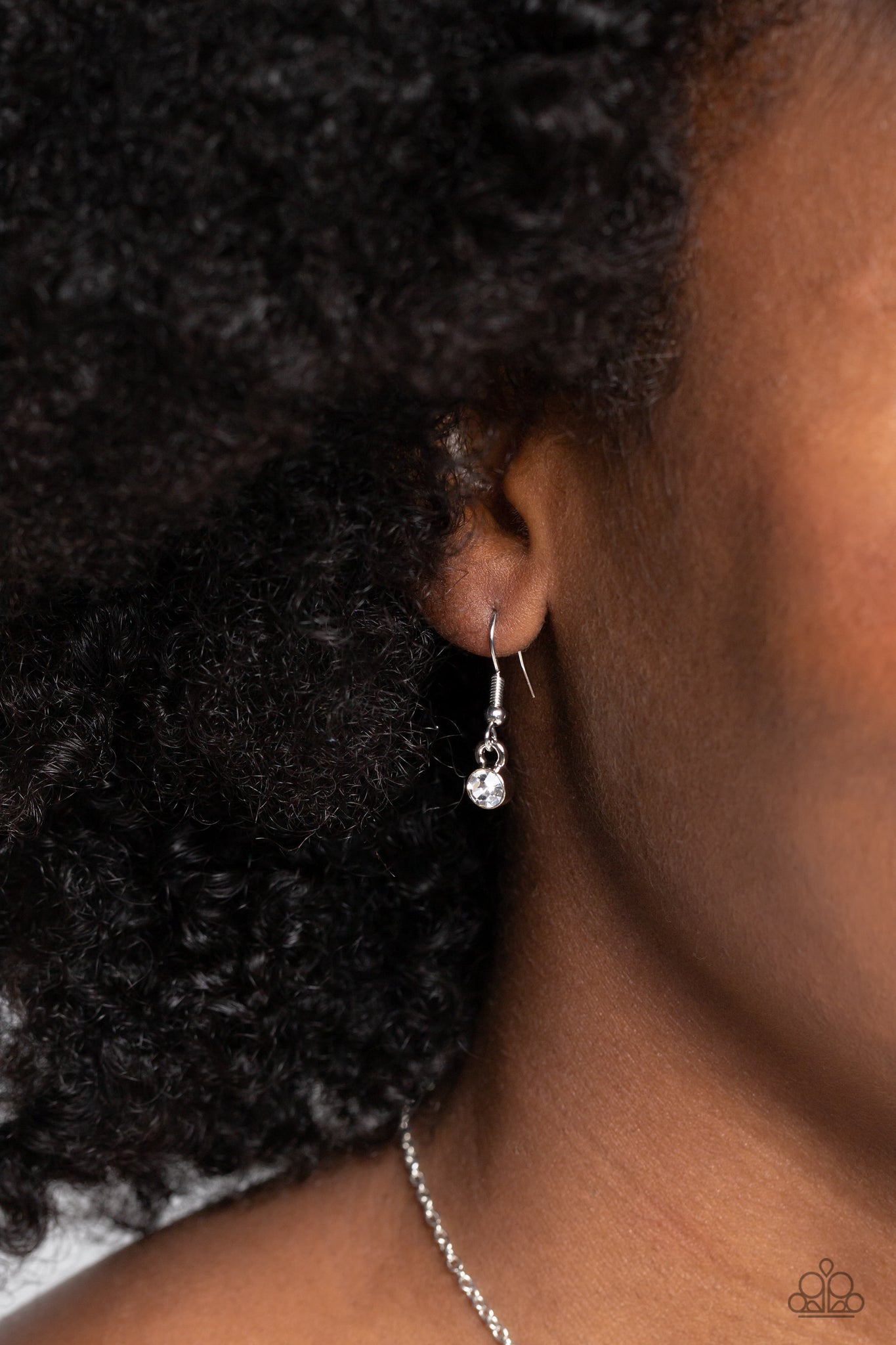 Pink rhinestone petals bloom from the center of a white rhinestone center, creating a sparkling flower that glistens atop a dainty silver chain. Features an adjustable clasp closure.