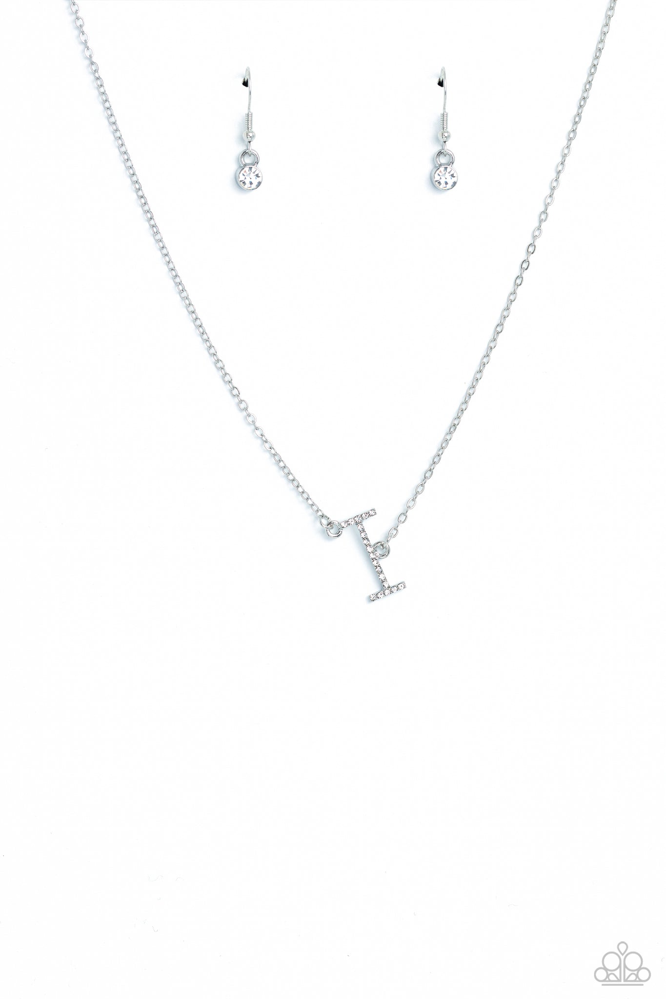 Embossed with dainty white rhinestones, a silver letter "I" hovers below the collar from a dainty silver chain, for a sentimentally simple design. Features an adjustable clasp closure.