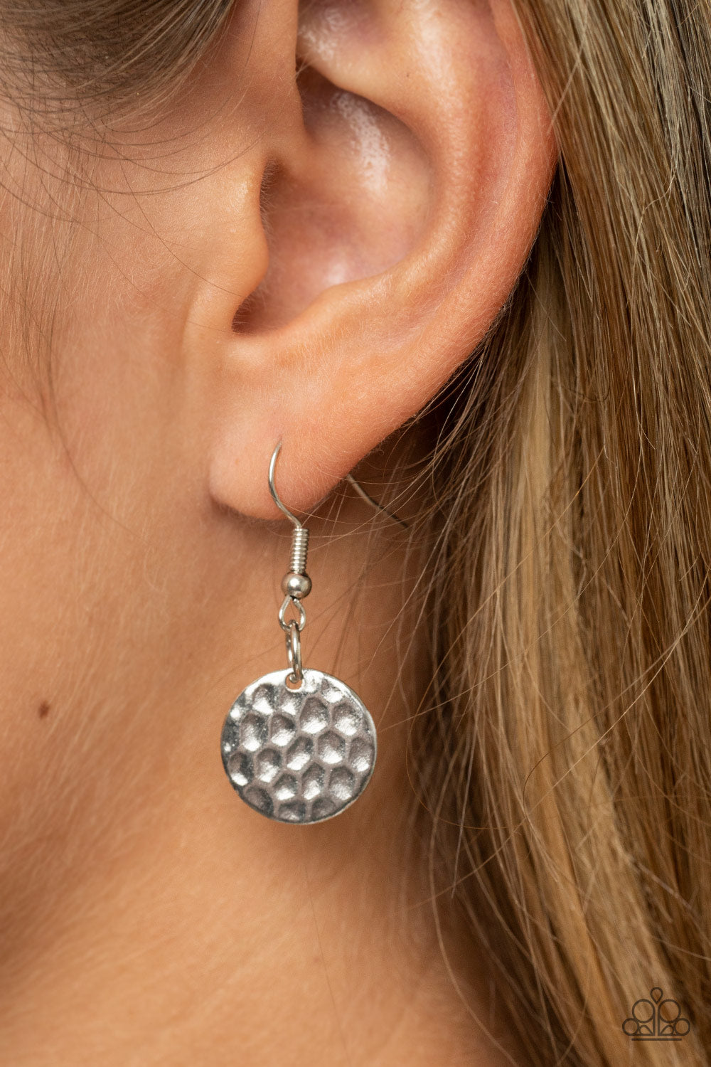 A meticulously hammered silver frame is knotted in place with Olive Branch cording, invoking an artisan inspired aesthetic. Features an adjustable clasp closure.