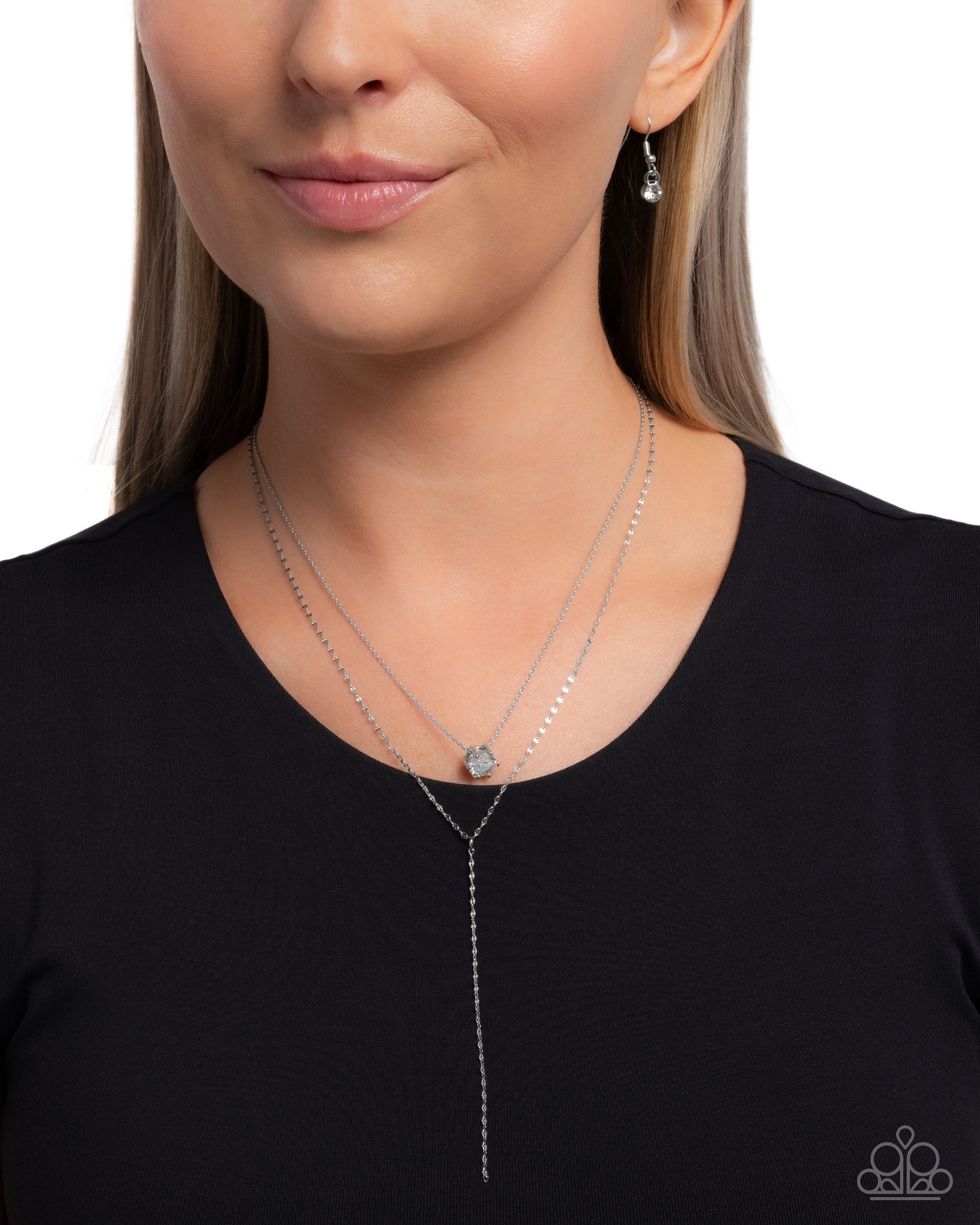 Featuring a subtle texture, a dainty strand of glistening silver chain delicately turns into a timeless, extended tassel for a refined flair. Pronged in silver fittings, a solitaire white cubic zirconia rests at the center of a dainty silver chain above the extended tassel for a touch of light-reflecting dazzle. Features an adjustable clasp closure.