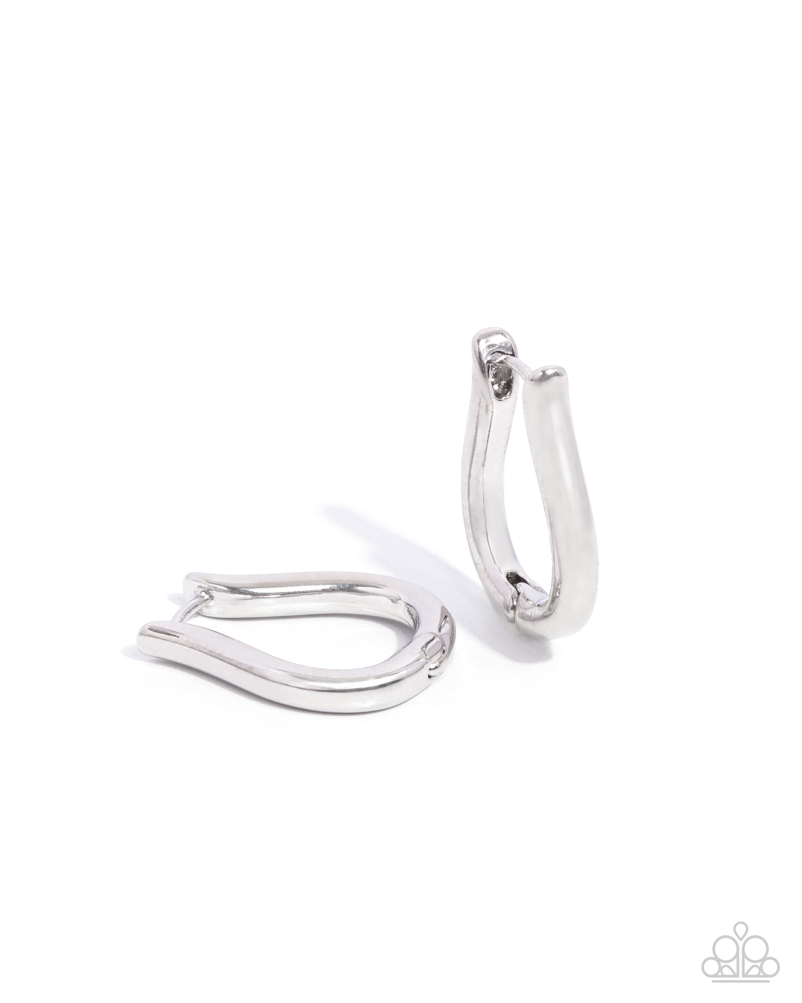 Featuring a horseshoe-like cut, a sleek silver hoop hugs the ear for a whimsical-inspired design. Earring attaches to a standard hinge closure fitting. Hoop measures approximately 3/4" in diameter.